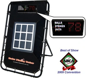 Pro Radar Pitching Trainer is a one-of-a-kind new product that combines a pitching target with a sonic radar ball speed indicator and a virtual umpire for the ultimate pitching experience.